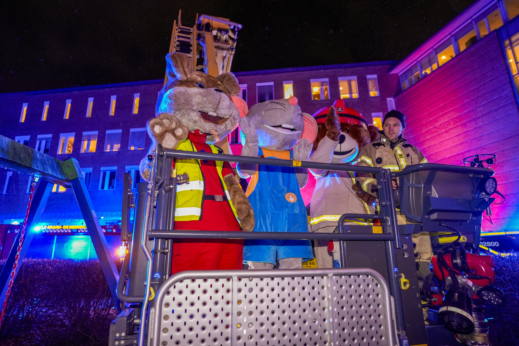 For niende år på rad møtte nødetatene opp med kjøretøy, blålys og brannbamsen Bjørnis for å glede barn som tilbringer julen på sykehus i Oslo.