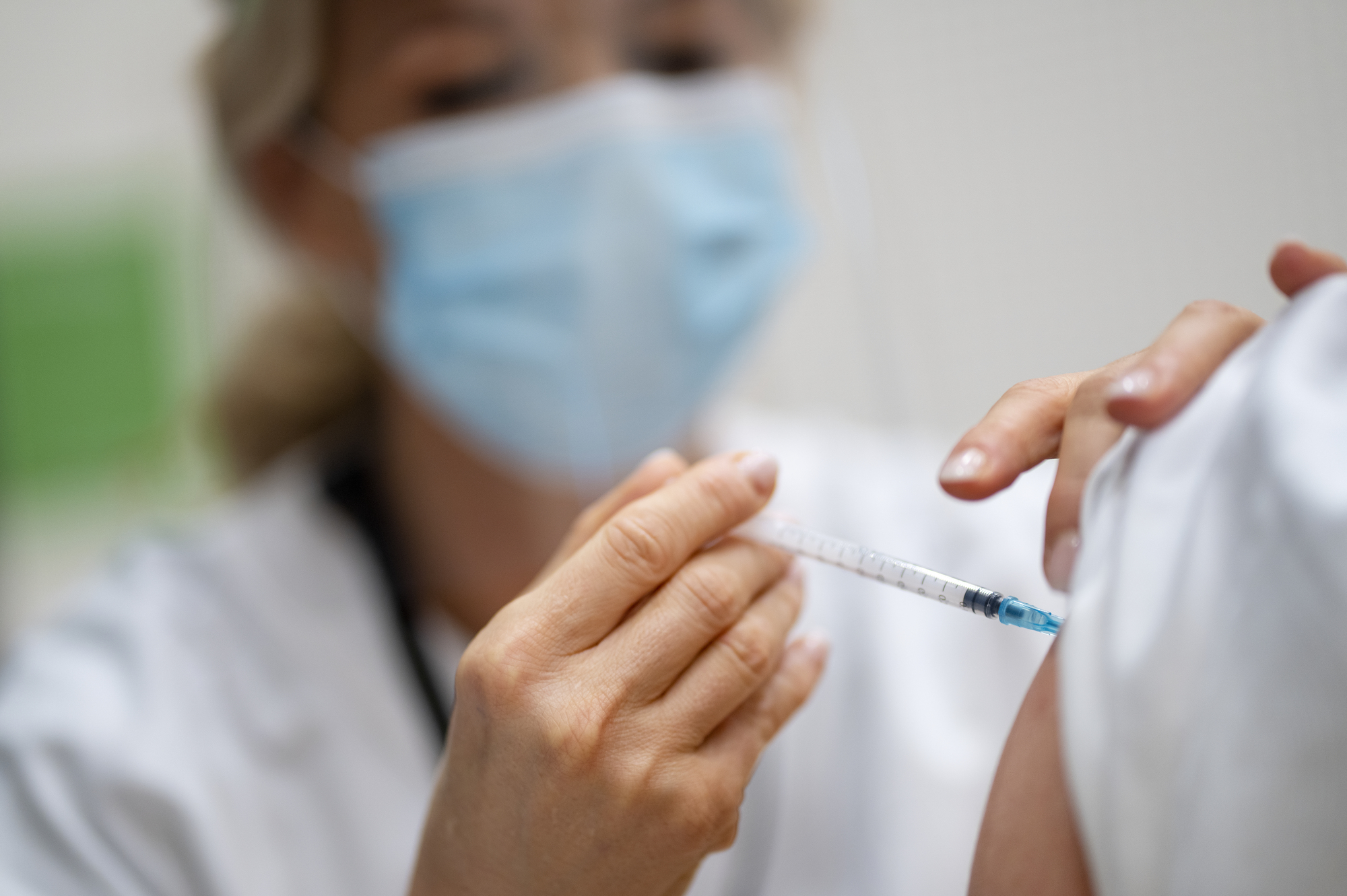 Bildet viser helsepersonell som setter en vaksine.