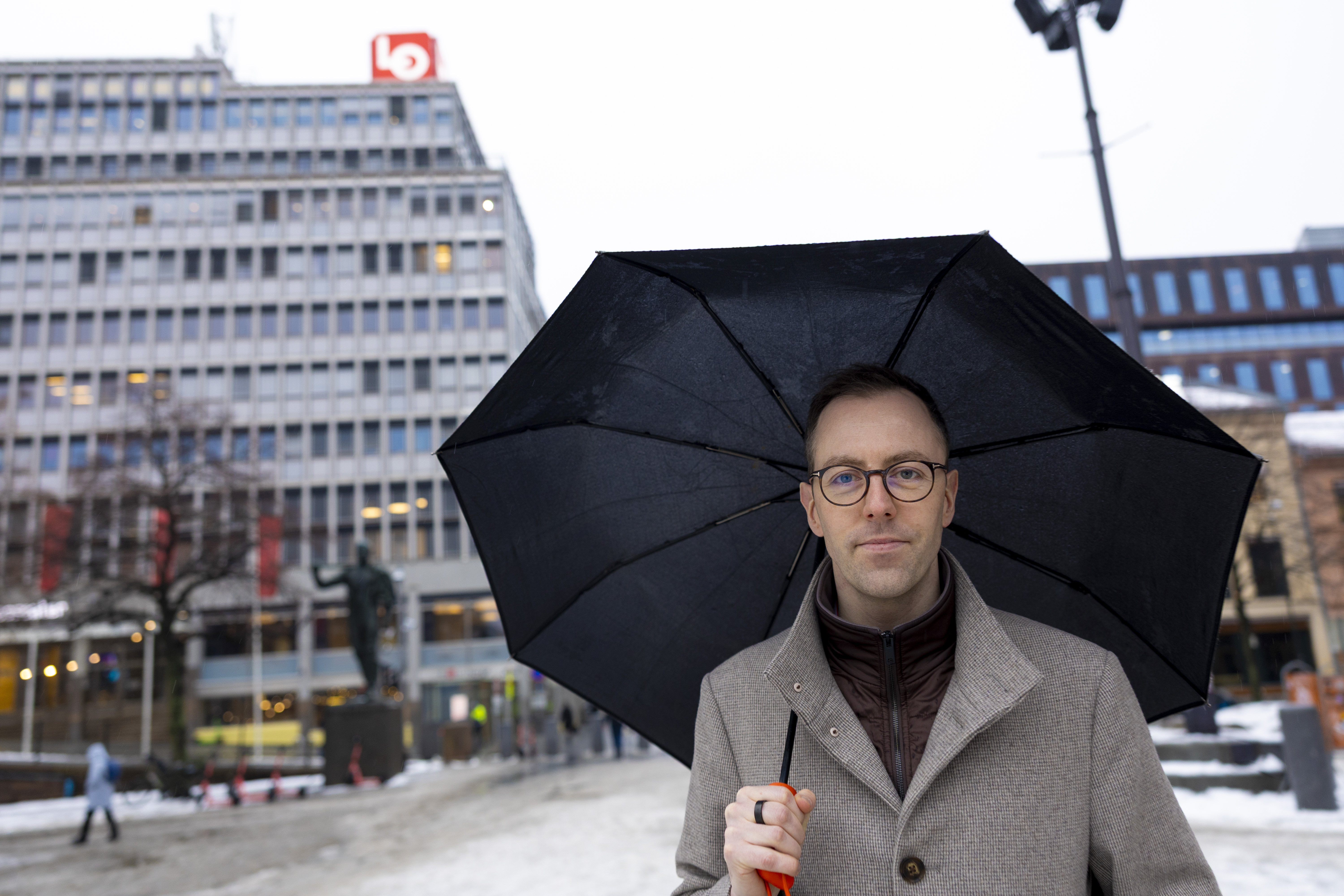 Bildet viser Nicholas Wilkinson på Youngstorget i Oslo.