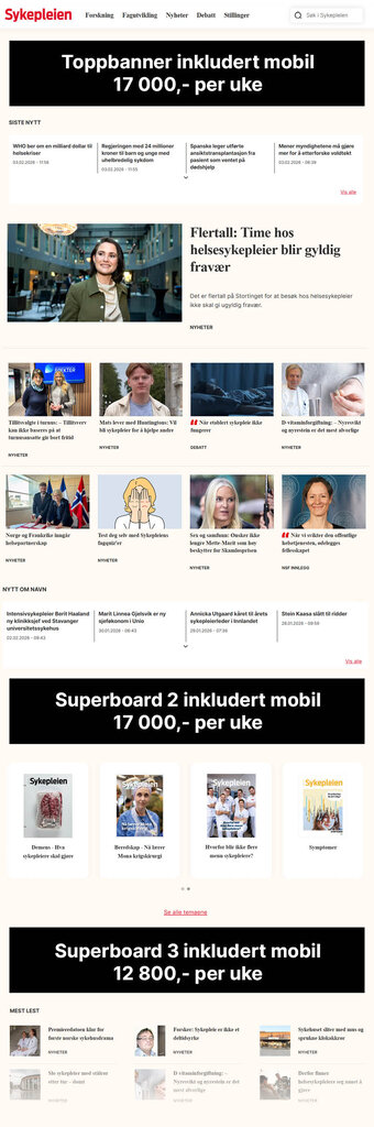 | Toppbanner | 1080 * 200 px (desktop) 320 * 150 px (mobil) | 17 000 |