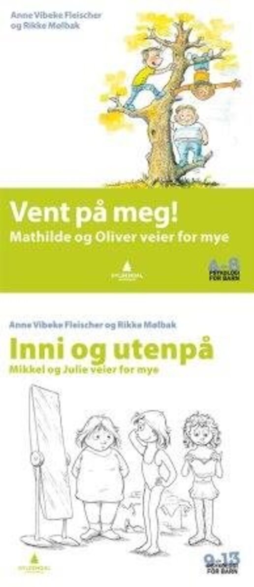 Boktittel: Vent på meg! Mathilde og Oliver veier for mye og Inni og utenpå. Mikkel og Julie veier for mye