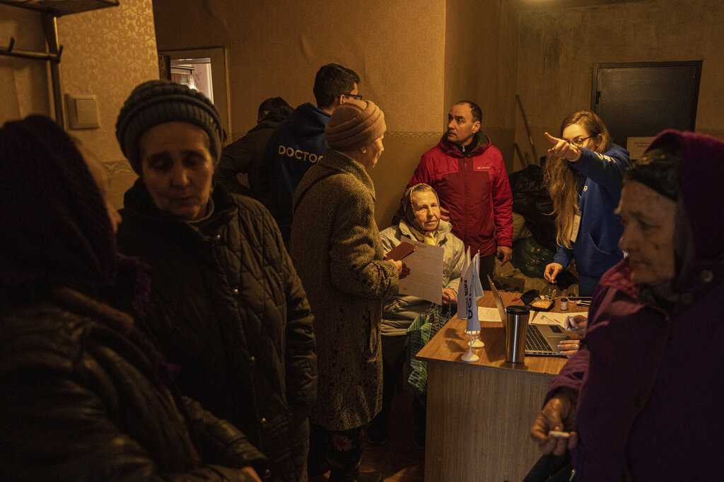 I et kommunalt bygg med knuste vinduer dekket av treplater, har frivillige satt opp en mobil klinikk nær fronten i Ukraina.