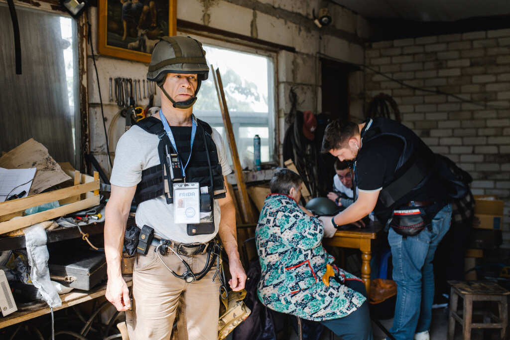 Legen er 27 år gamle Bohdan Avramenko, en hjertespesialist som koordinerer helseinnsatsen til FRIDA. Manglende helsehjelp fører til forverring av helseproblemer som lett kunne vært løst med jevnlig tilsyn av lege, forteller han.