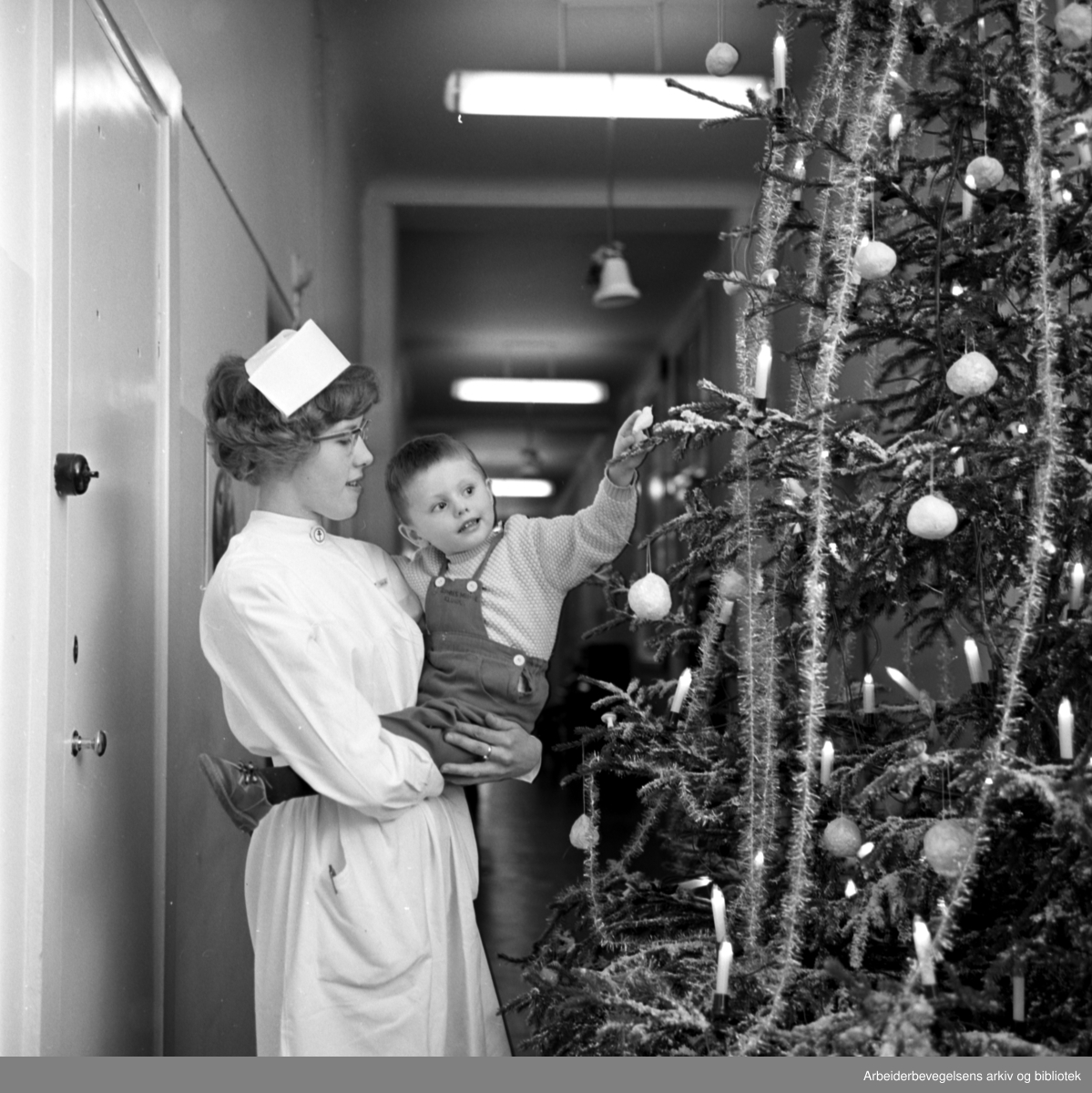 Blinkskudd Jul på sykehusJul på Sophies Minde 1963. Her er lille Bård fra Raufoss på armen til sykepleier Anna Pedersen.Fotograf: Ukjent, Arbeiderbevegelsens arkiv og bibliotekFlere blinkskuddAnnonseAnnonse