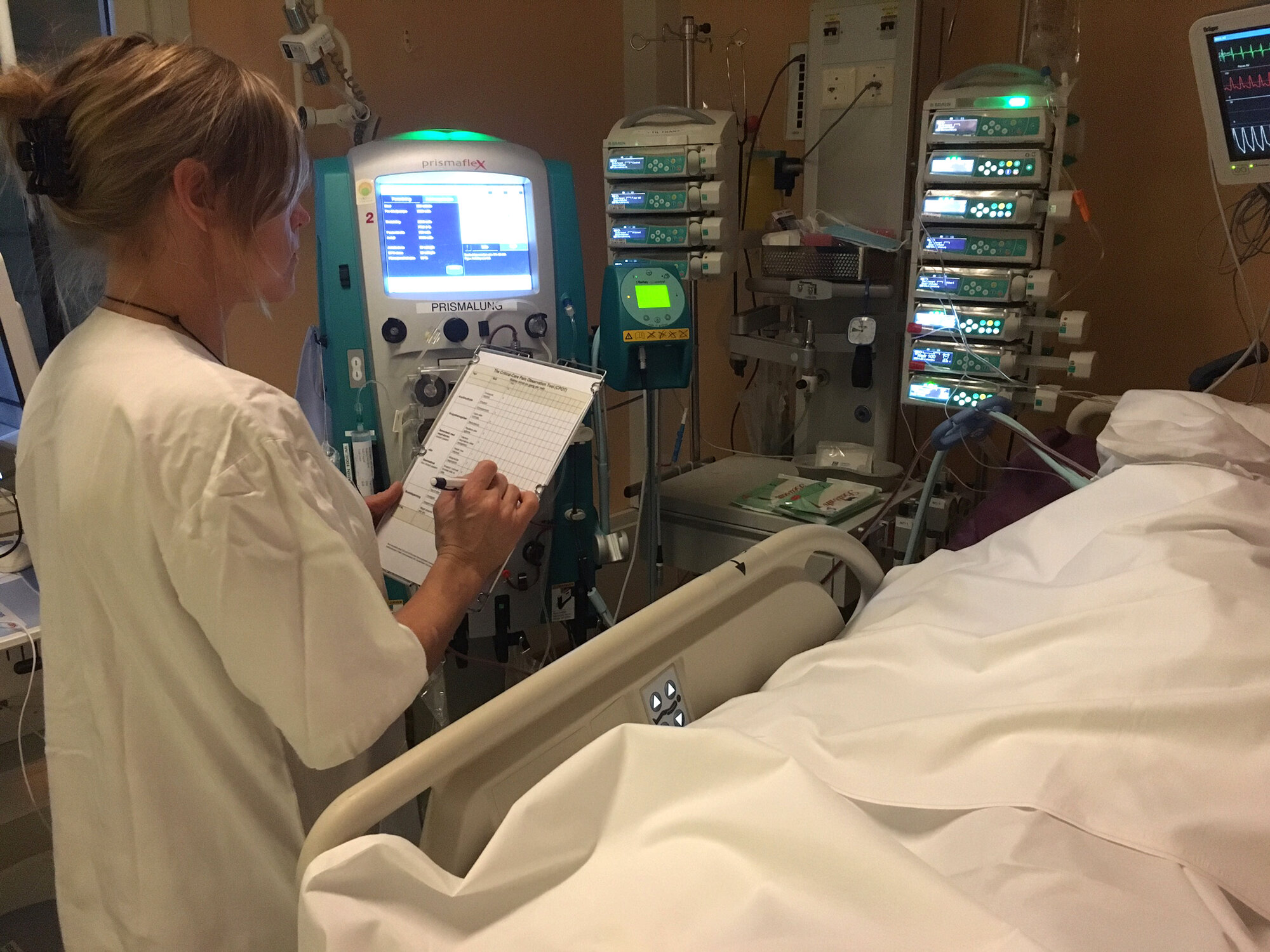 The study was performed in a general intensive care unit at a Norwegian university hospital from April to September 2014. The majority of the unit’s patients were mechanically ventilated, received continuous analgesia (pain medication) and sedation (tranquilisers/sleep medication), and had impaired ability to communicate. Of a total 100 nurses in the unit, 95 were intensive care nurses.