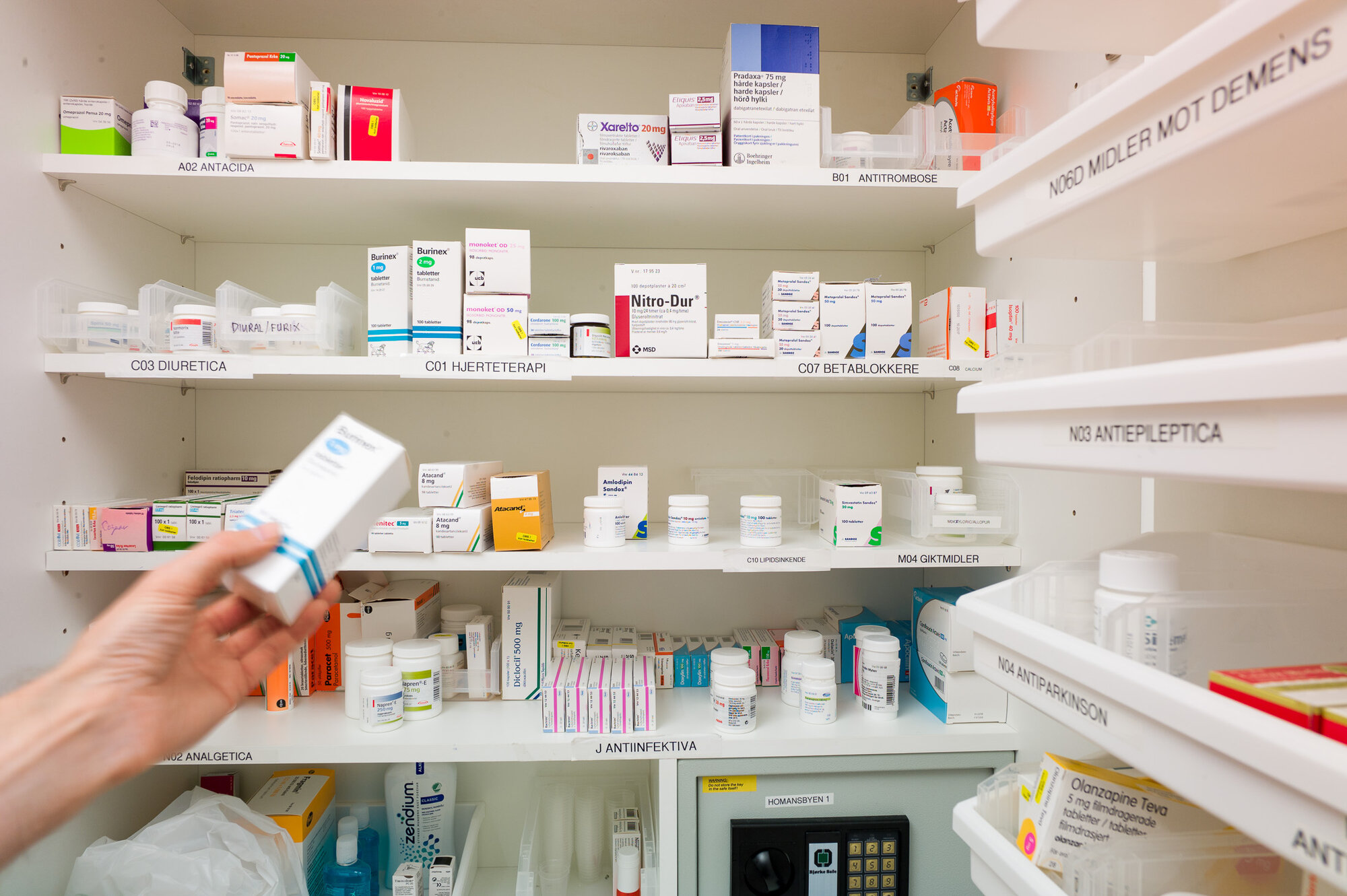 Verification by two members of staff was a well-established safety procedure. Two nurses checked the selection or preparation of medicines. If only one nurse was on duty, a practitioner (for example, a care worker or a nursing assistant) could help to check. The medicines were placed in a pill dispenser one week in advance, and were most often distributed by a nursing assistant. Two nurses mixed the drugs used in the infusion pump, but only one changed the pump. The informants said that after a near-accident, the staff had discussed whether there should also be two present when changing the pump.