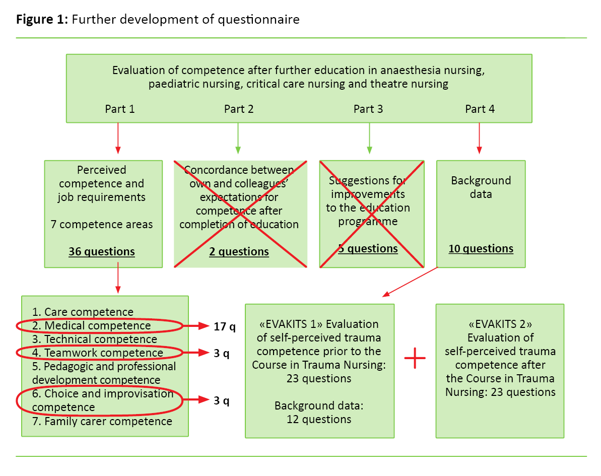 We further developed the validated questionnaire aimed at evaluating competence after further education in anaesthesia nursing, paediatric nursing, critical care nursing and theatre nursing ( Evaluering av kompetanse etter videreutdanning i anestesi-, barne-, intensiv- og operasjonssykepleie). As not all of the questions were relevant to our study, a panel of experts evaluated the relevant part of the questionnaire to ensure that it was clinically credible and valid (36).