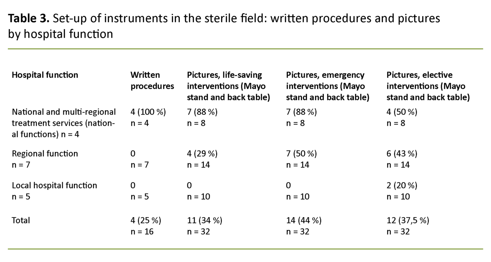 Table 3. Set-up of instruments in the sterile field: written procedures and pictures by hospital function