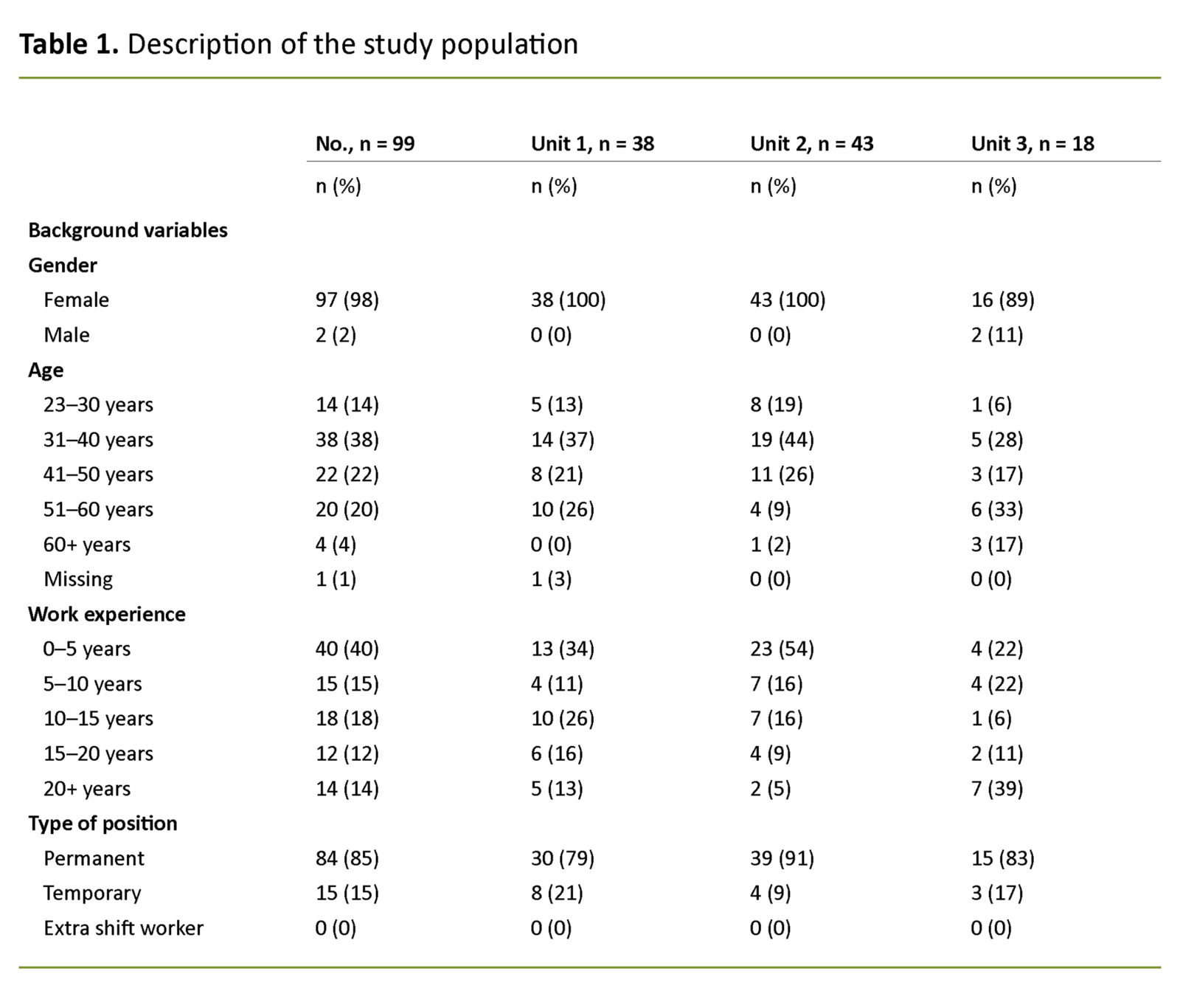A total of 99 midwives responded to the questionnaire (99/160; 62 per cent). The study population is presented in Table 1.