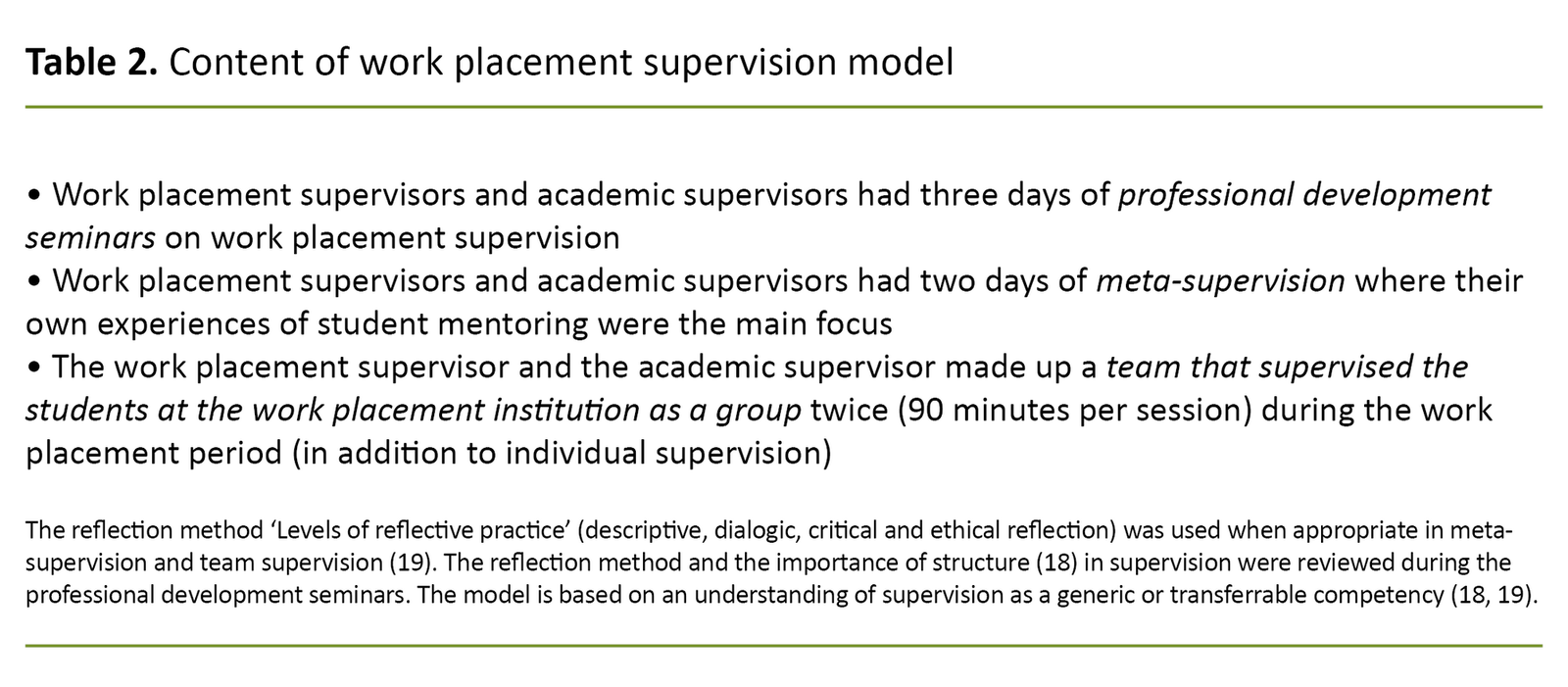 Both the work placement supervisors and the academic supervisors emphasised that learning the reflection method was positive and that it strengthened their knowledge and skills, and their attitudes to supervision.