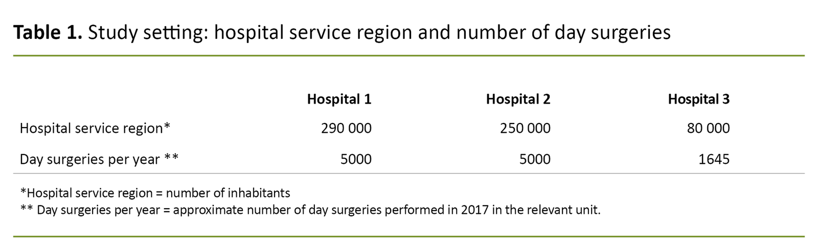 Table 1 presents an overview of the hospitals’ service region and level of day-surgery activity in 2017.