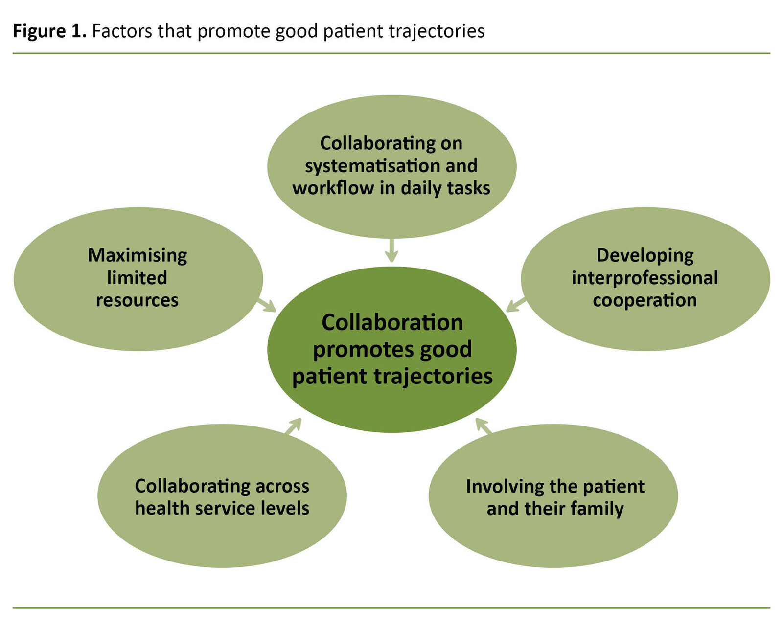 Results: Collaborating on systematisation and workflow in daily tasks, developing interprofessional cooperation, involving the patient and their family, collaborating across health service levels and maximising limited resources were factors that promoted a good patient trajectory.