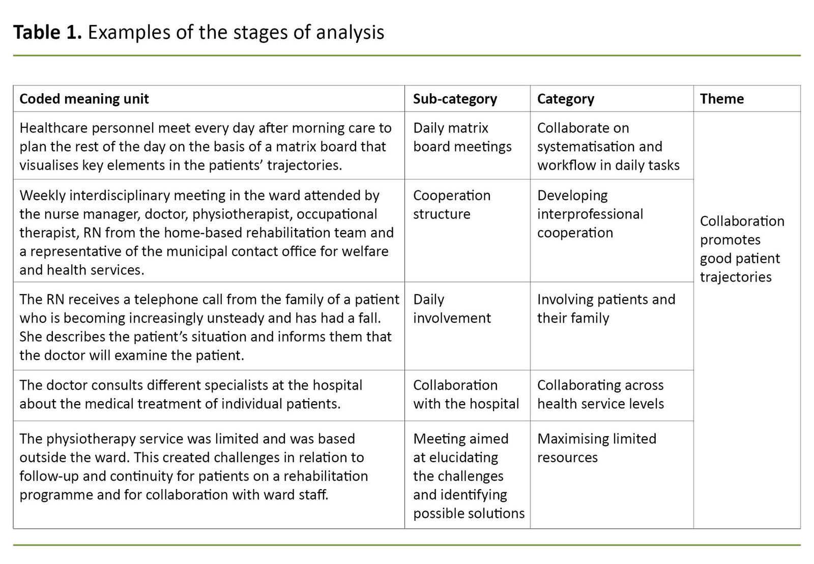 Together, the categories composed the overarching theme Collaboration promotes good patient trajectories (Table 1).
