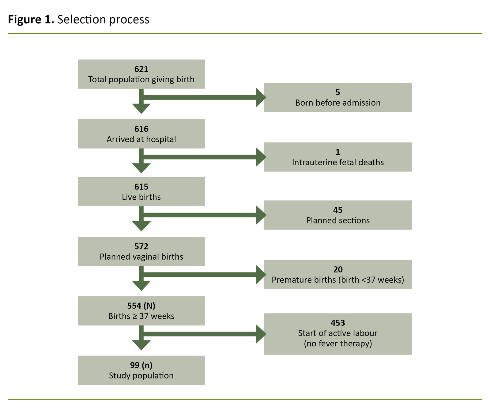 The study is a description of a sample, and there is therefore no control group. Consequently, the study cannot provide answers regarding correlations between maternal and neonatal characteristics, obstetric variables and risk of intrapartum fever.