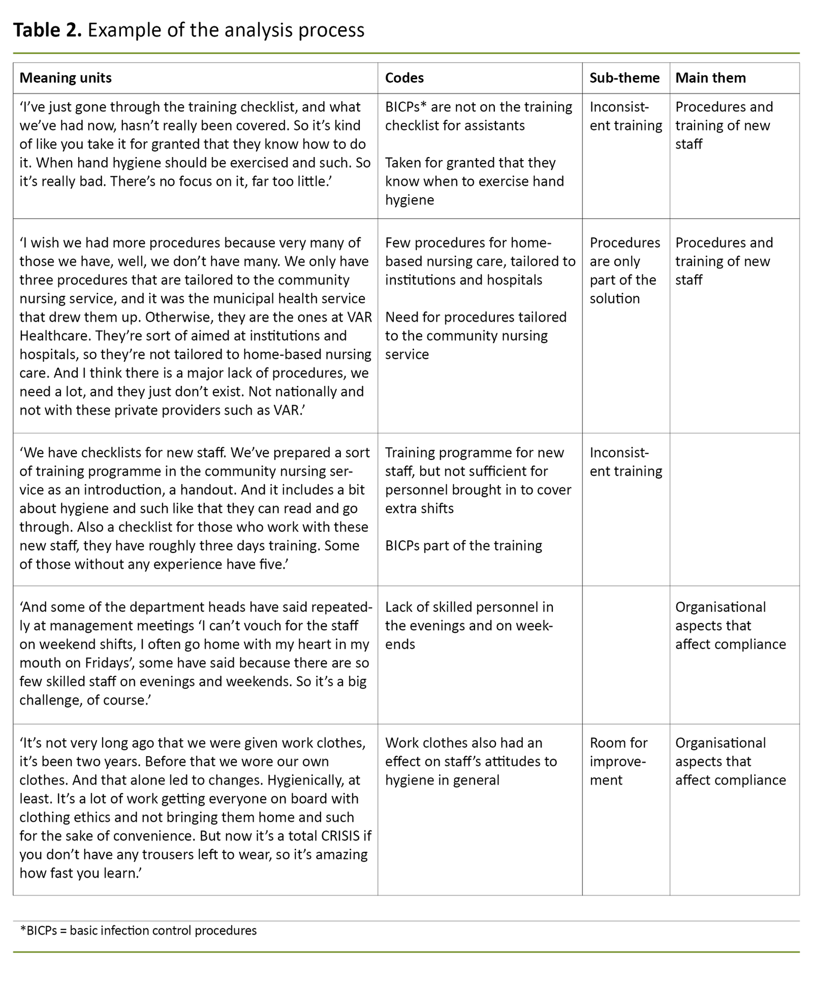 The sample consisted of nursing consultants, a nursing manager and an infection control public health nurse (Table 1). They were informed about the purpose of the study and the interviewer’s background from the community nursing service.