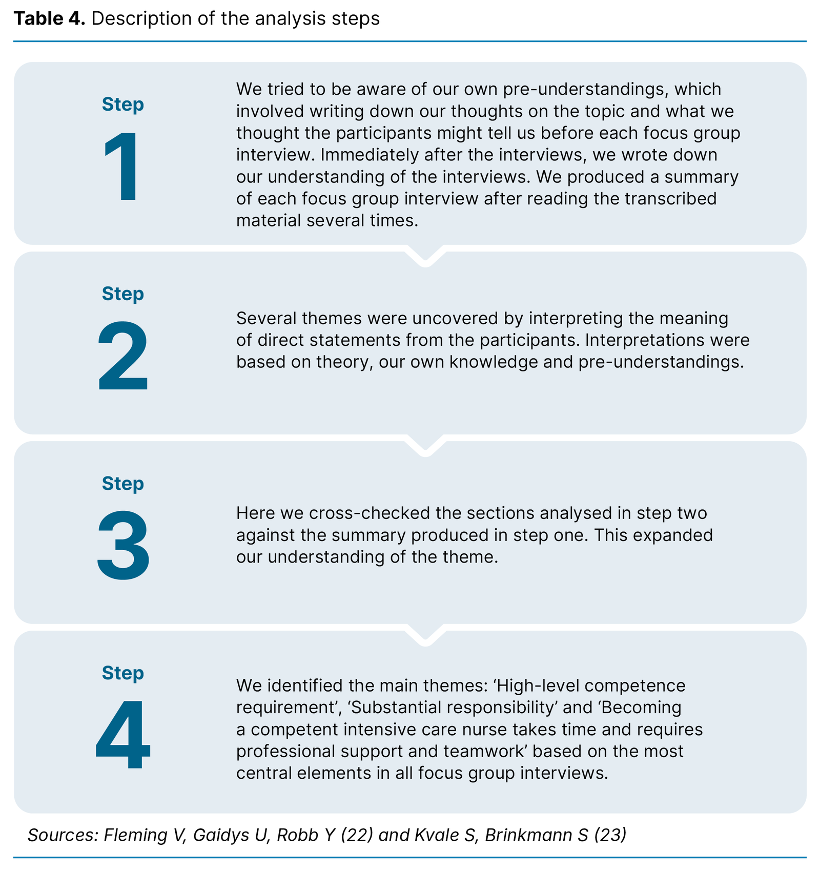Individual interviews could have yielded different results and perhaps more personal experiences of not feeling competent. Further research is needed on the transition from intensive care nursing student to qualified intensive care nurse.