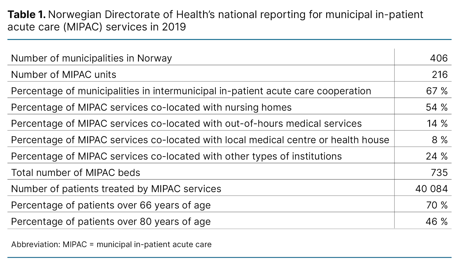 The study sets focus on MIPAC services, an important measure in the Coordination Reform. The aim is to provide 24-hour emergency beds for acutely ill patients in order to reduce unnecessary hospitalisation (20).