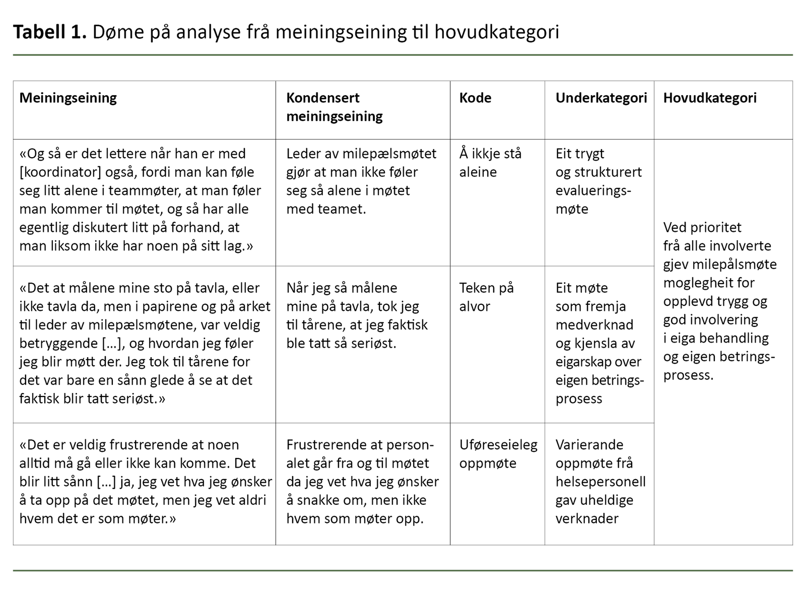 Milepålsmøte bidrog til at pasientane kjende seg inkluderte i eigen betringsprosess.
