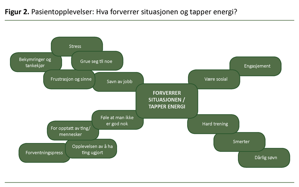 Sykepleieren hjelper pasientene til å bli bevisst på hva som gir og tapper energi hos den enkelte.
