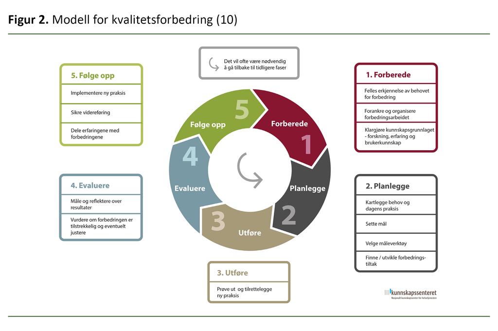 10. Konsmo T, de Vibe M, Bakke T, Udness E, Eggesvik S, Norheim G, et al. Modell for kvalitetsforbedring: utvikling og bruk av modellen i praktisk forbedringsarbeid. Oslo: Nasjonalt kunnskapssenter for helsetjenesten; 2015.