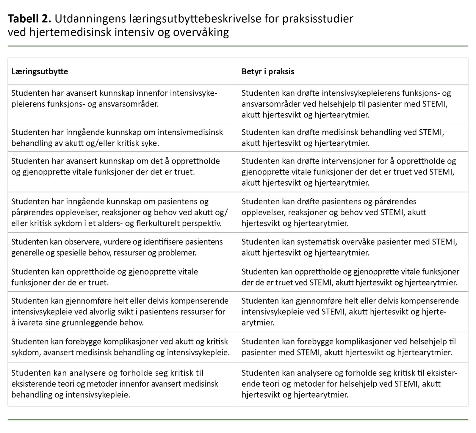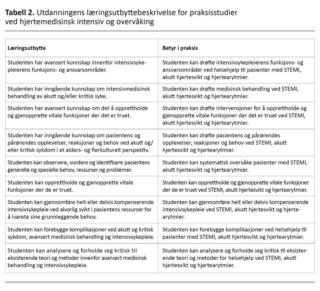 For å bevisstgjøre studentene om pasientens fysiske og psykiske sårbarhet ved akutt og kritisk hjertesykdom erfarte også utdanningsinstitusjonen at det var behov for mer strukturert innhold i praksisveiledningen.