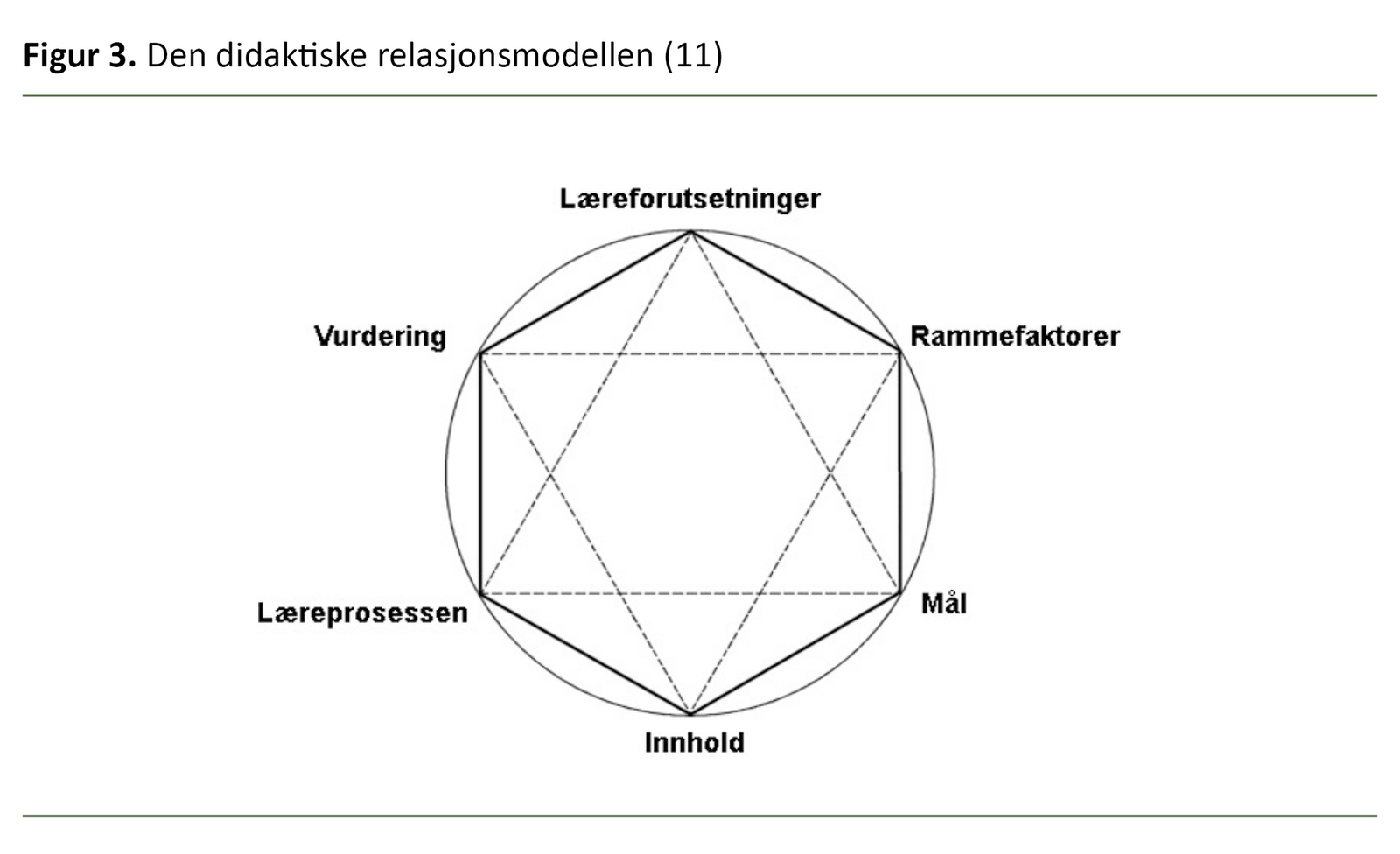 Didaktikk kan beskrives som praktisk-teoretisk planlegging, gjennomføring og kritisk analyse av undervisning og læring. Den didaktiske relasjonsmodellen omfatter ulike aspekter det er vanlig å ta hensyn til ved undervisning og veiledning (11).