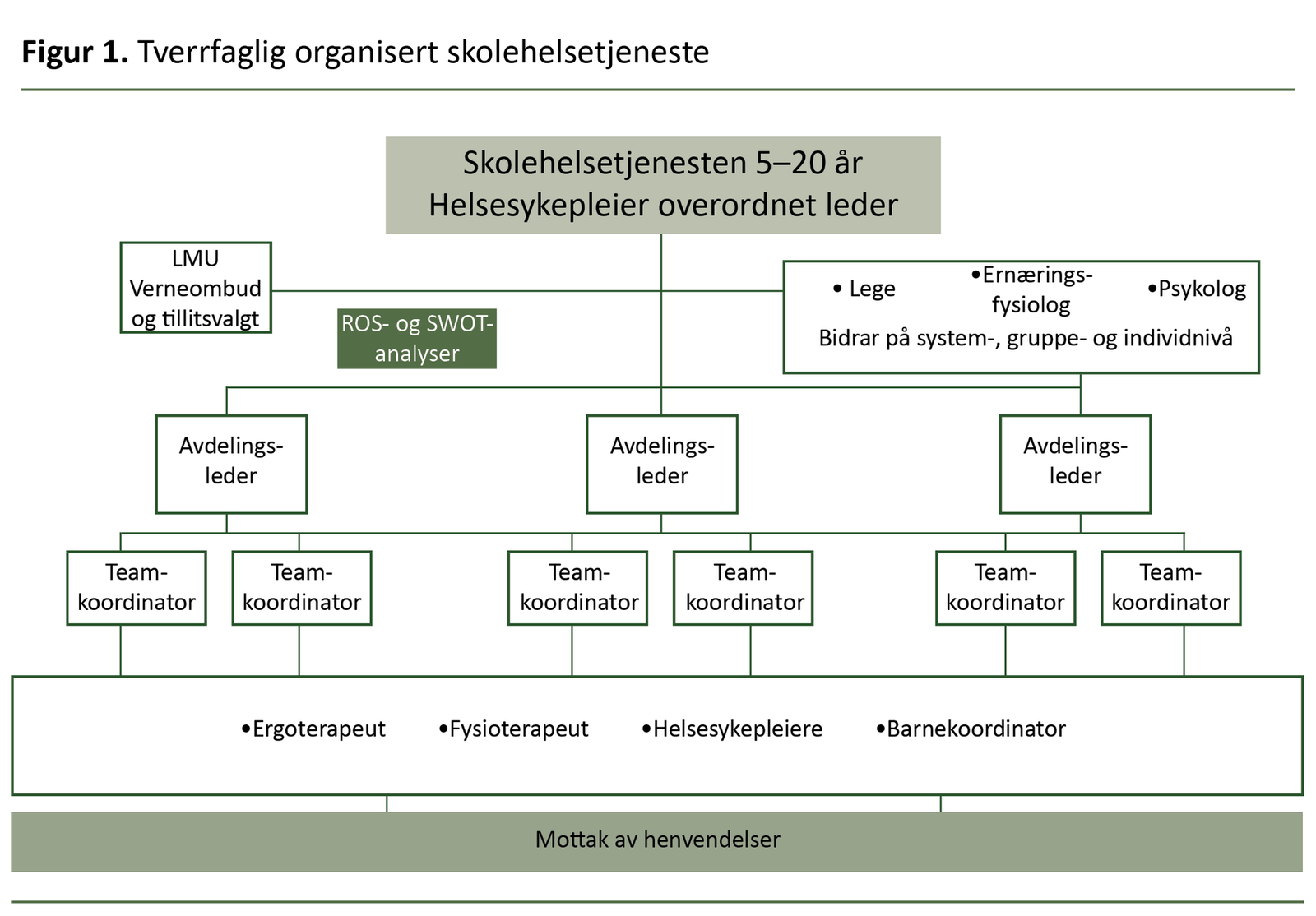 Helsesykepleiere er organisert i en tjeneste som skal arbeide tverrfaglig. Tverrfaglig ledelse kan bidra til å skape en faglig forsvarlig tjeneste som skal ivareta ulike profesjonsetiske hensyn (4). Skolehelsetjenesten trenger selvstendige medarbeidere med faglige kunnskaper, relasjonskompetanse og samarbeids- og samhandlingsevner.