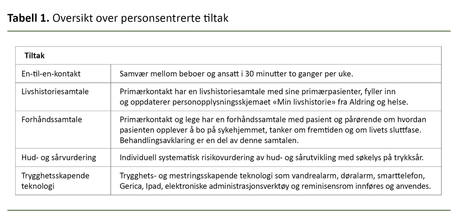 Fem personsentrerte tiltak ble beskrevet før oppstart
