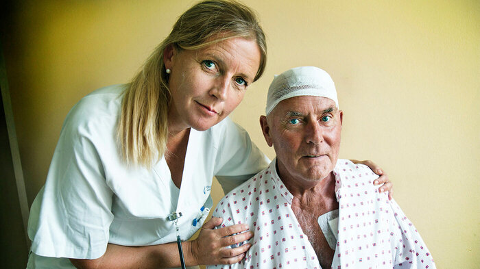 Fastspent, i våken tilstand, blir Finn Nortvedt operert i hjernen. Parkinsons sykdom kan ikke kureres, men han kan få et bedre liv.