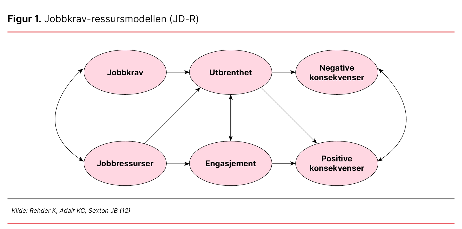 Faktorer som påvirker velværet til helsepersonell, kan deles i to grupper: individuelle faktorer og organisatoriske (miljø)faktorer (12). Individuelle faktorer kan være fysiske og psykiske forhold, mens organisatoriske faktorer kan handle om jobboppgaver, etterspørsel og kontroll, relasjoner til kolleger og overordnede og arbeidsmiljøet (13).