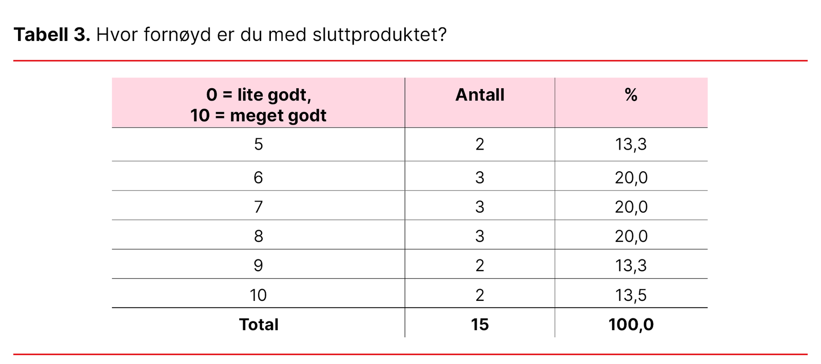 Tabell 3. Hvor fornøyd er du med sluttproduktet?