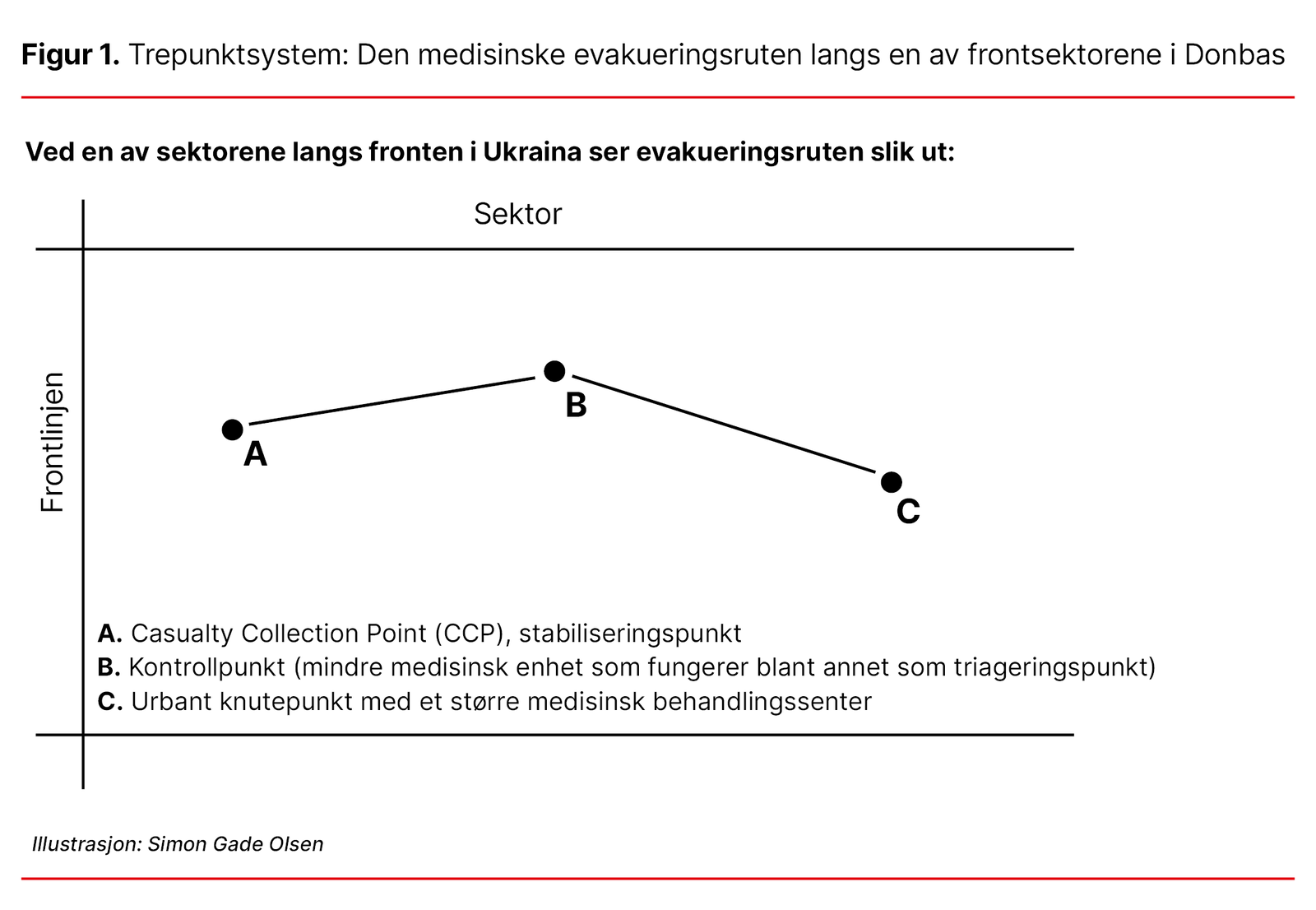 Tidligere fulgte man «golden hour»-prinsippet – å få den sårede til behandling innen en time, ofte med ambulansehelikoptre – men i Ukraina ble det raskt klart at dette var umulig fordi landet ikke har kontroll over luftrommet.