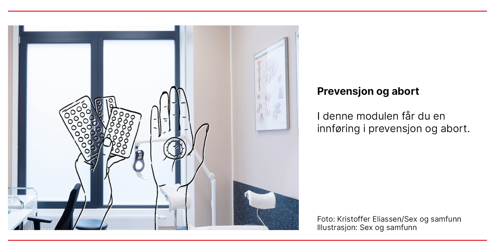 Modulen omfatter også kunnskap om fertilitet og gir en oversikt over lovverk og retningslinjer for abort i Norge (8). På de fysiske samlingene er det også praktisk trening i innsetting og uttak av spiral og p-stav.