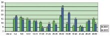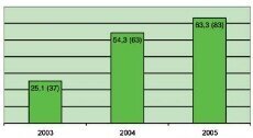obsposten har økt fra 25,1 prosent (37) til 63,3 prosent (83) i
