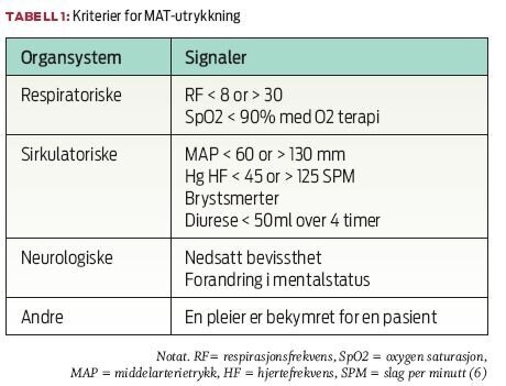 Svikt i å gi rask og kompetent pleie til en pasient på en sengepost som er blitt akutt syk, kan føre til uventede komplikasjoner og død (7). Ifølge en rapport fra Institute of Medicine ble det estimert at omtrent 100 000 dødsfall i amerikanske sykehus skyldtes slik svikt (8). I 2007 undersøkte Akershus Universitetssykehus over 1000 journaler og fant at nesten 20 prosent av pasientene ble påført en uventet hendelse (9). Norsk Pasientskadeerstatning (NPE) brukte over 750 millioner kroner på pasientskader i 2009 (10). Uventede hendelser og dødsfall i sykehus er et stort problem for pasientsikkerhet over hele verden. De fleste sykehus har "stansteam" når det oppstår akutte situasjoner, som hjerte- eller respirasjonsstans. Men flere og flere klinikere og forskere mener at dette teamet ofte kommer altfor seint og at deres kompetanse burde ha blitt brukt før en akutt hjerte- eller respirasjonsstans oppstår (5). Hjertestans er vanligvis den siste hendelsen i en rekke fysiologiske signaler som varsler at pasientens tilstand forverres (1). Før hjertestans har opp til 80 prosent av pasientene tydelige fysiologisk tegn på forverring, og vitale kroppsfunksjoner er unormale åtte timer før hjertestans inntreffer hos halvparten av de som får hjertestans på sykehus (11,12). I de aller fleste tilfeller oppstår ikke hjertestans brått eller uforutsigbart, men kan bli oppdaget gjennom visse fysiologiske tegn. På bakgrunn av dette kommer "stansteam" vanligvis altfor seint (5).