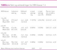 • Vektendring: kg: differanse utreisevekt – innkomstvekt, prosent: (vektdifferanse/innkomstvekt) x100. Alvorlig vekttap under sykehusoppholdet ble satt til >2 prosent (27).