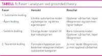 Analysen består av åpen, selektiv og teoretisk koding (tabell 1). Vi startet med en åpen kodingsprosess hvor hvert intervju ble analysert og sammenliknet med de tidligere, kombinert med skrevne memo, alt i en kontinuerlig prosess. Vi identifiserte deltakernes hovedproblem den første tiden hjemme med en nyfødt, for deretter å identifisere den såkalte kjernekategorien som kunne fange det handlingsmønster som mødrene anvendte for å håndtere problemet (27). I analyseprosessen ble kodene gruppert i større kategorier, der beskrivende koder som «ber om hjelp ved amming», «lærer å håndpumpe» ble utviklet til mer teoretiske begreper som «utvikler ferdigheter» eller «utvikler kompetanse». Ved selektiv koding konsentrerte vi analysene omkring relasjoner til kjernekategorien, og til slutt kodet vi teoretisk om relasjoner mellom kategoriene. De to siste fokusgruppene anvendte vi til å sikre variasjon i demografiske data og berike de framkomne koder og hypoteser mot teoretisk metning, det vil si at det ikke kom fram nye kategorier fra intervjuene. Hensikten med teoretisk koding er å relatere kodene til hverandre på en slik måte at teorien stemmer med data og er relevant, ved å la mønstre eller prosesser framstå og fungere slik at de forklarer hva som pågår i det studerte feltet (28).