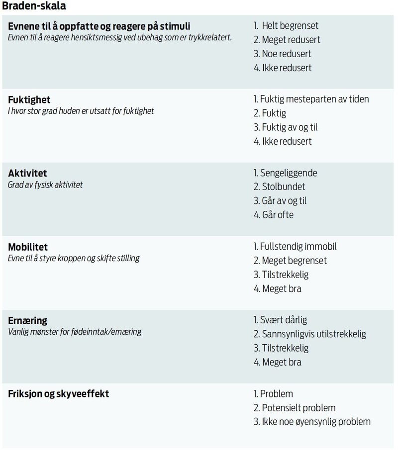 I Danmark screenes alle pasienter ved sykehusinnleggelse for å forebygge trykksår.