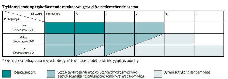 BRADEN-skalaen og riktig madrass har hatt kjempesuksess i Danmark. Disse enkle virkemidlene mot trykksår bør også vi i rike Norge bruke, om vi skal kunne kalle våre sykehus moderne. Noen norske sykehus har riktignok allerede tatt dem i bruk, men altfor mange sykehus og kommuner bruker dem ikke. Mange tror de sparer penger ved ikke å ha de riktige madrassene tilgjengelige på en hjelpemiddelsentral eller et sengelager, men det motsatte er tilfelle. Et moderne sykehus skal ikke gi pasientene sine unødvendige trykksår!