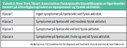 Hjertesviktens alvorlighetsgrad blir klassifisert ved hjelp av