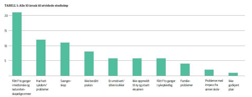 Seks studenter hadde fått F i sykepleiefag to ganger, og fire studenter hadde ulike familieproblemer som medførte at de måtte ta permisjon fra studiet.