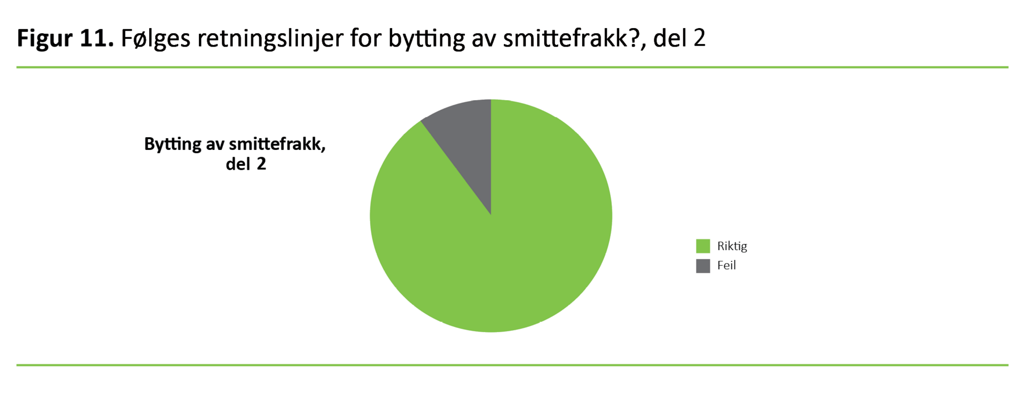 Figur 3 viser at litt under en fjerdedel av deltakerne ikke fulgte retningslinjene for bytting av beskyttelsesfrakk (smittefrakk).