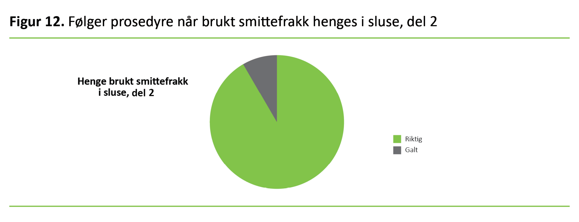 Om man sammenlikner figur 4 og figur 12, ser man at tallene er noe bedret etter at intervensjonspakken ble iverksatt. Flere oppgir at de ville hengt smittefrakken med ren side ut i slusen.