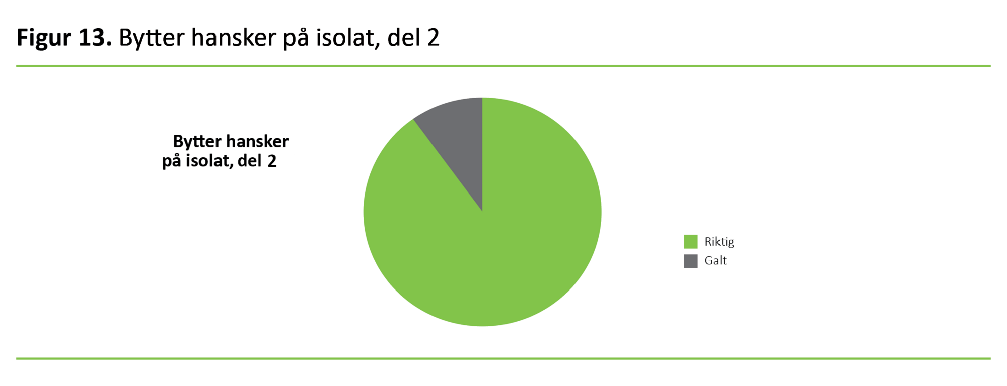 Sammenlikning av figur 5 og figur 13 viser en markant bedring i selvrapportert bytte av hansker i forbindelse med arbeid inne på et isolat.