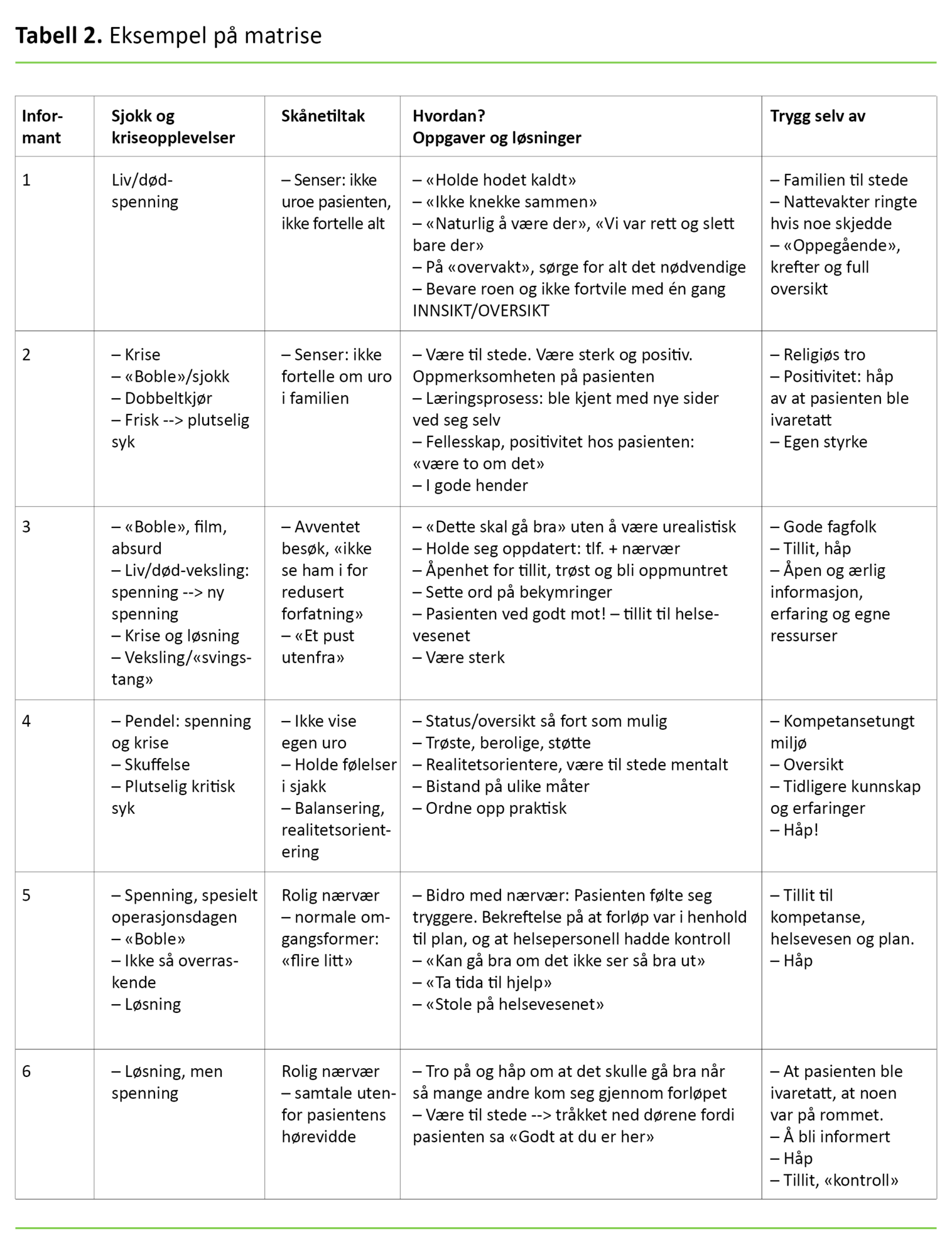 Tabell 2. Eksempel på matrise