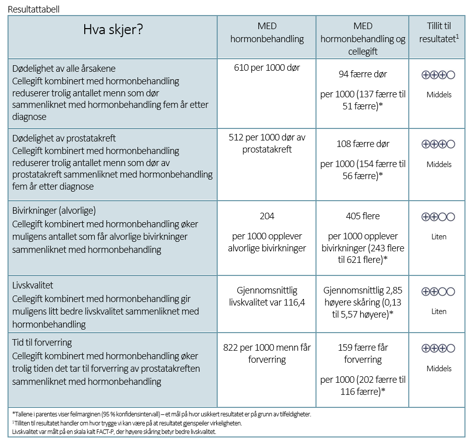 Virker tillegg av cellegift bedre enn bare hormon­behandling på prostata­kreft med spredning?