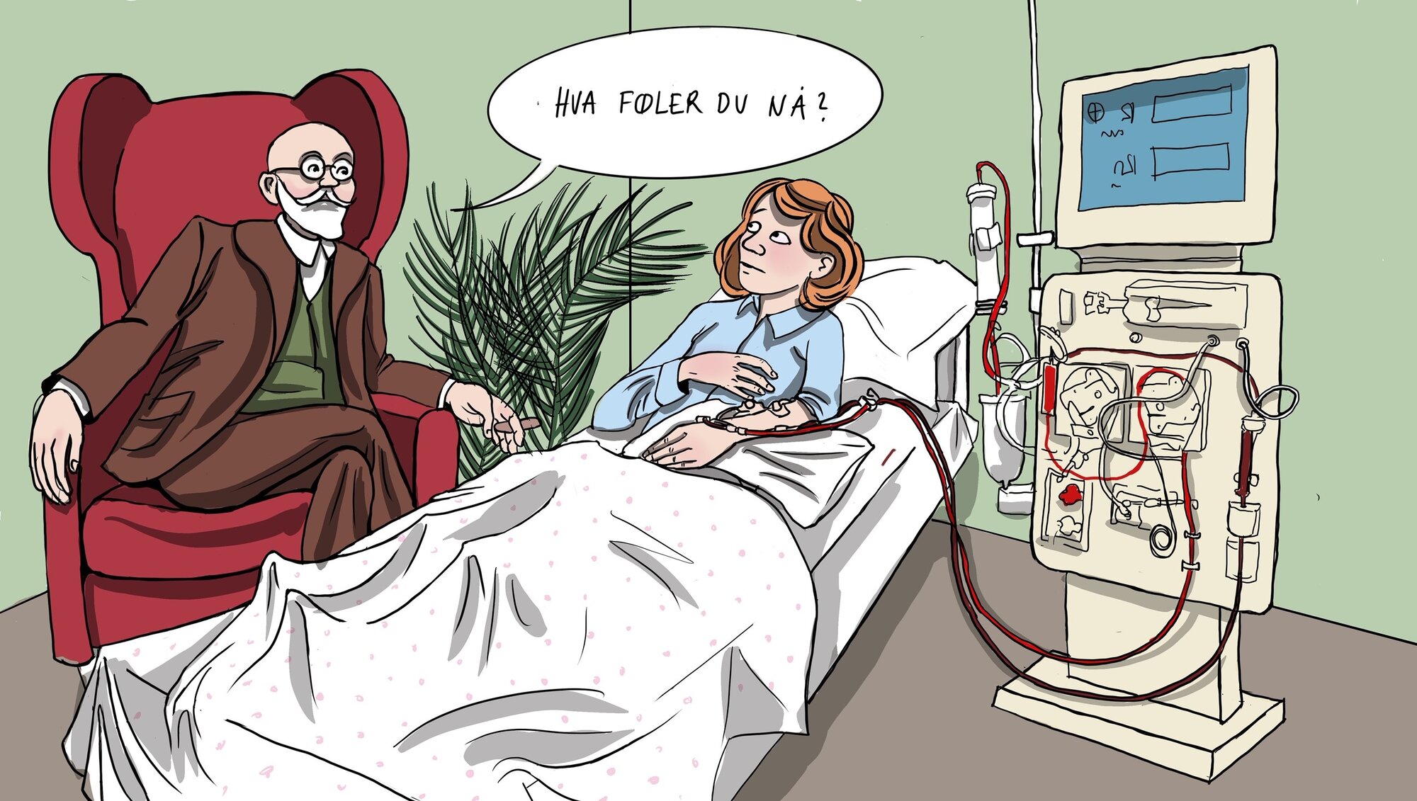 Pasienter som får dialysebehandling, har økt risiko for depresjon. Behandling med hemodialyse kan gjøres på sykehus, ved enkelte helsesentre eller hjemme.