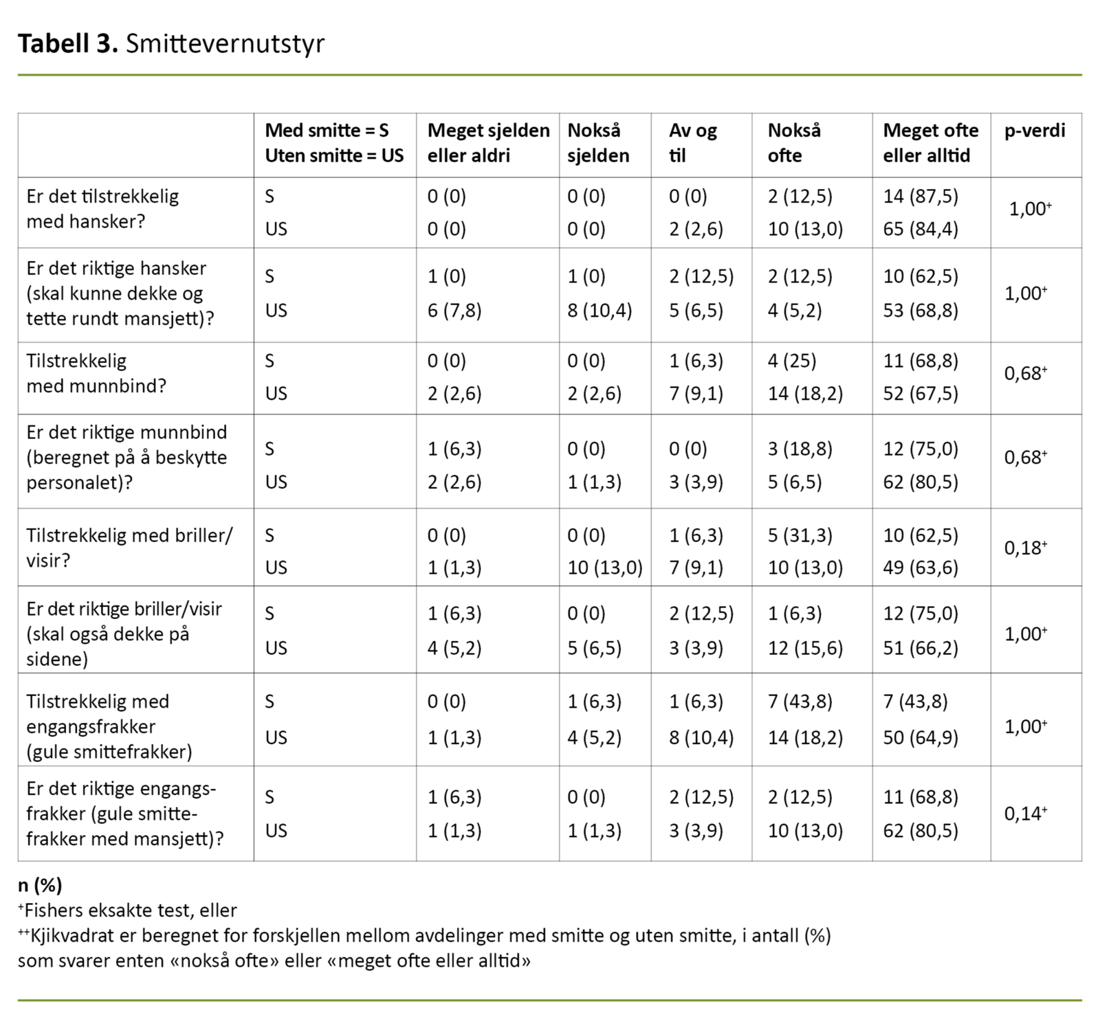 Tabell 4. Bruk av smittevernutstyr