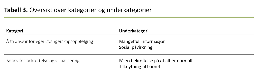 Kvinnene påpekte et behov for å få bekreftet svangerskapet i løpet av første trimester. Noen fortalte at de hadde få subjektive tegn på graviditet, og de ble bekymret, selv om graviditetstesten var positiv.