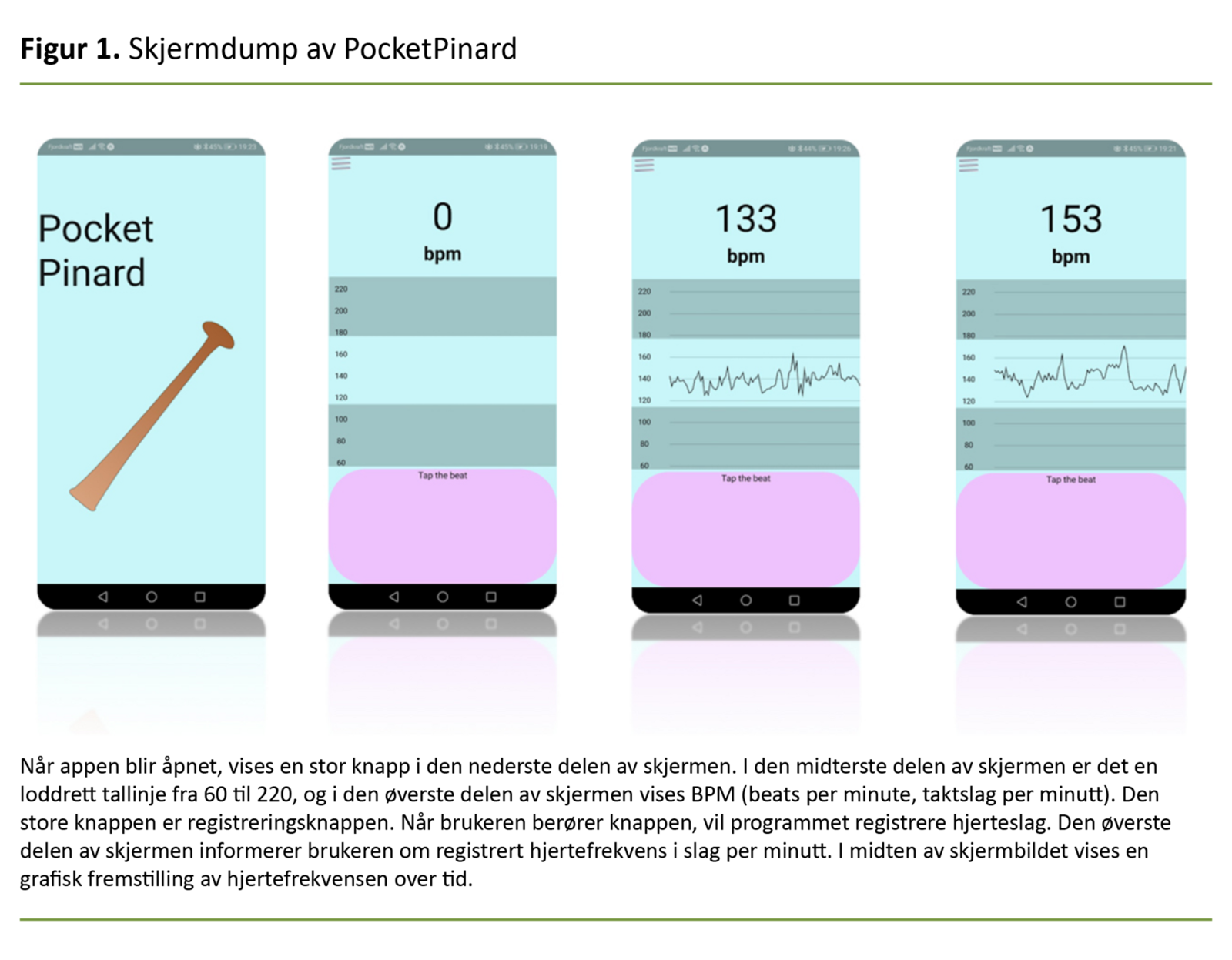 PocketPinard er en mobilapp for å registrere observert hjertefrekvens hos fosteret og kan brukes som et hjelpemiddel ved opplæring i bruk av jordmorstetoskop (figur 1).